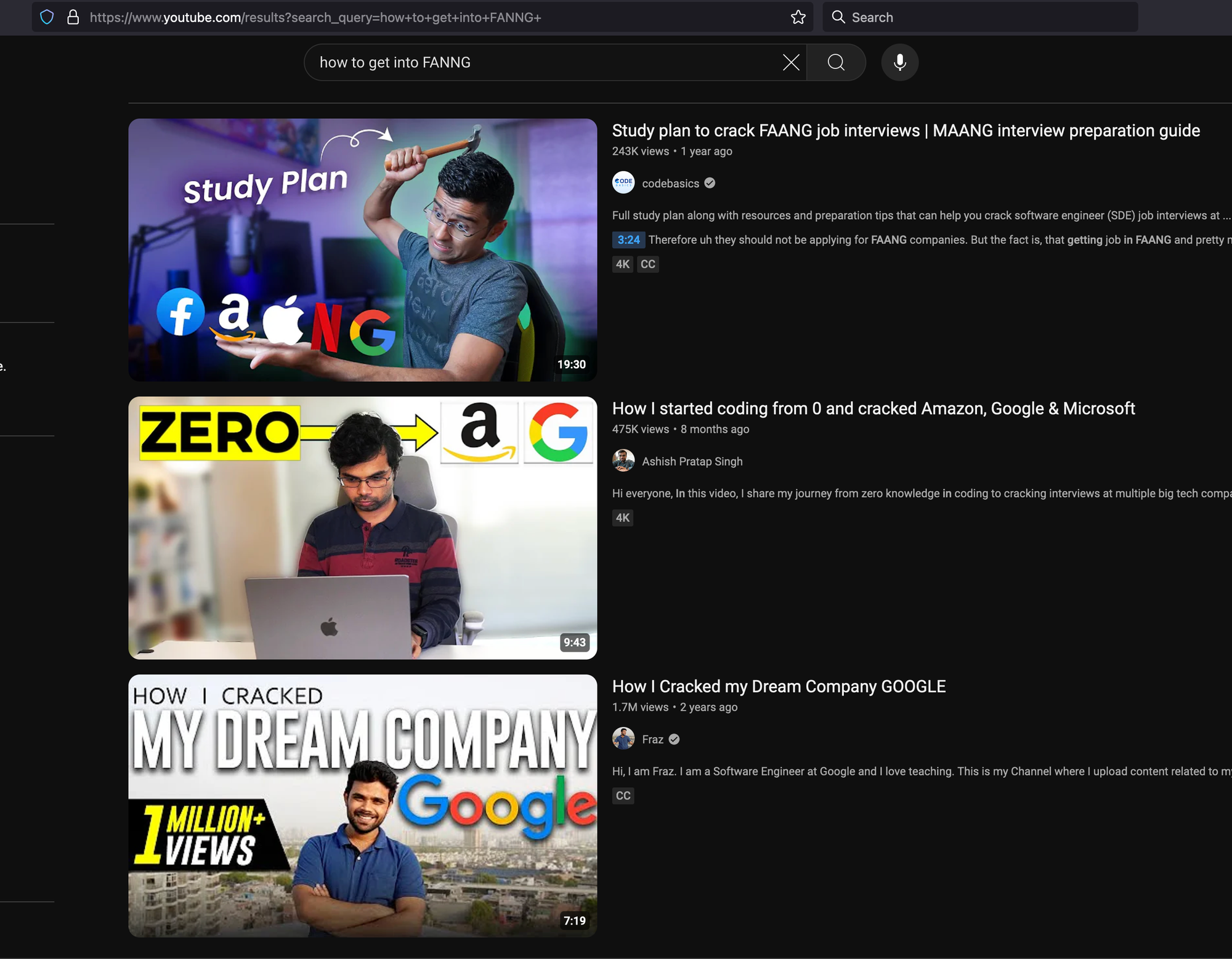 We all start just watching the videos on YouTube about how to get into companies like Microsoft or Amazon and all...